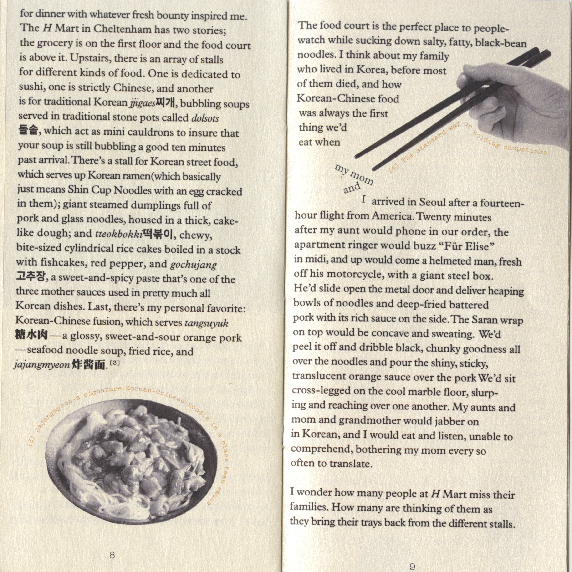A zine & website design for the article “Crying in H Mart”by the Korean-American writer Michelle Zauner, in which she explained how she is connected with her mother & Korean identity through food. To emphasize this point, I use elements of chopsticks & noodle for the book cover.